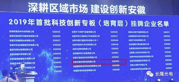 長隆光電:成功闖關(guān)科創(chuàng)板,成為安徽省首批掛牌企業(yè)之一