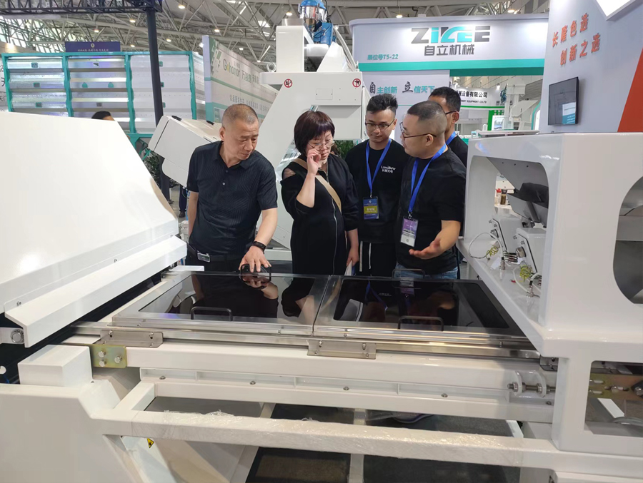 仔細(xì)參觀長隆光電AI深度學(xué)習(xí)色選機(jī)。